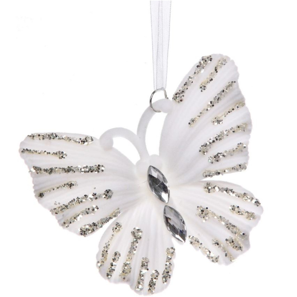 Украшение елочное 10*10 см белый серебро Элегантная бабочка Серпантин