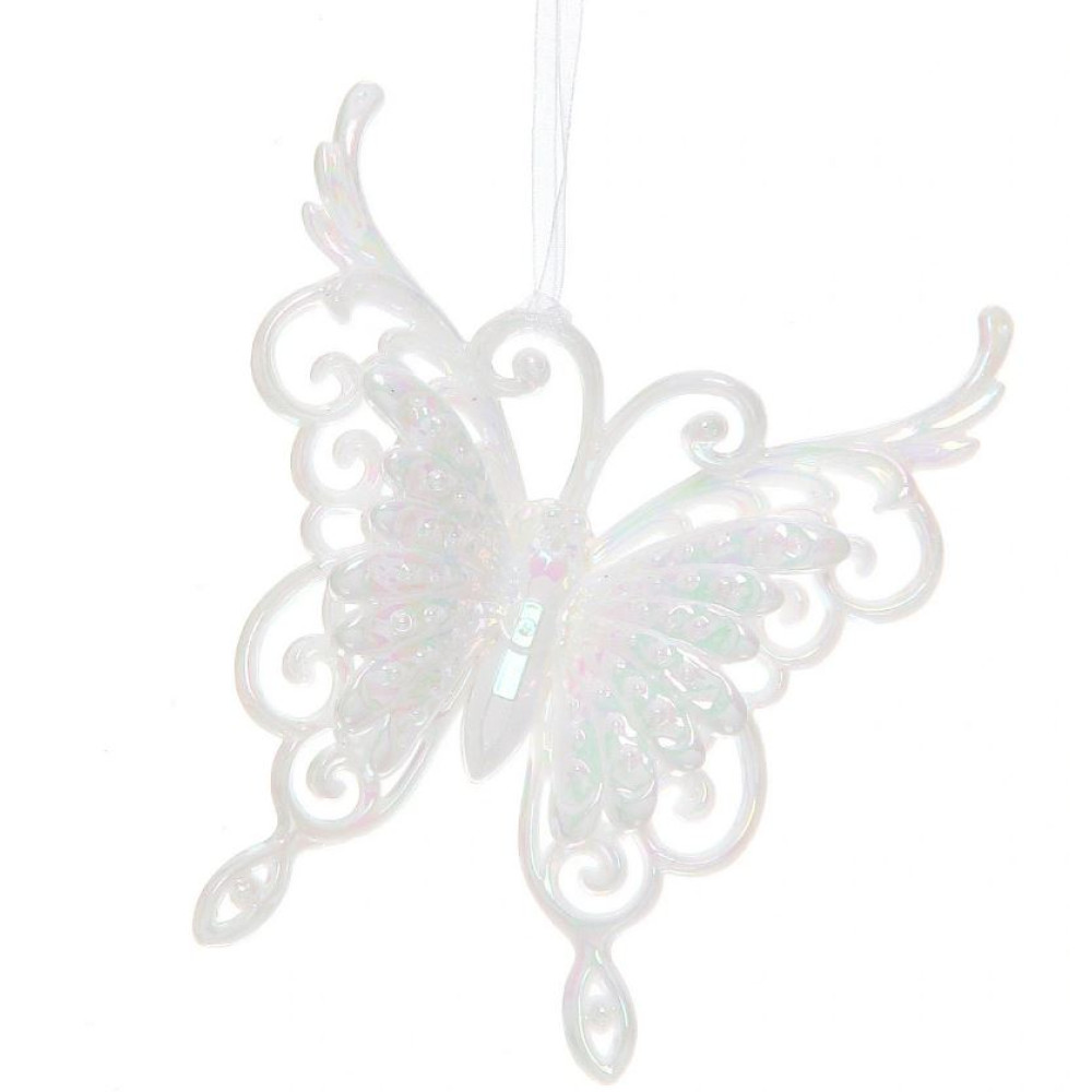 Украшение елочное 11*9,5 см жемчужный Роскошная бабочка Серпантин