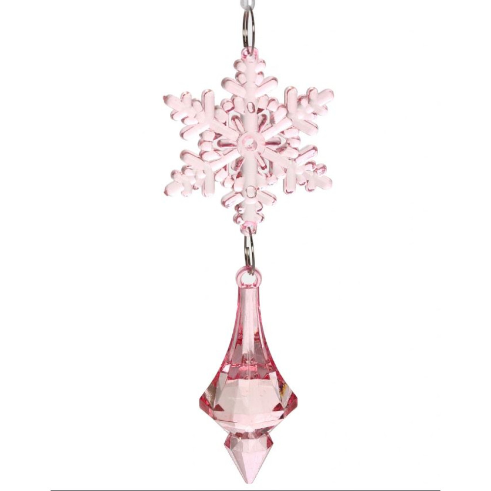 Украшение елочное 13 см розовый Хрустальная снежинка Серпантин