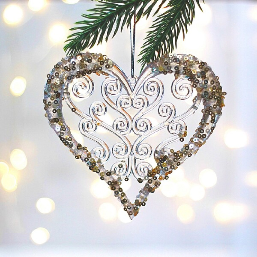 Украшение елочное пластик 13,5 см белый золотой блеск Волшебный снегопад Серпантин