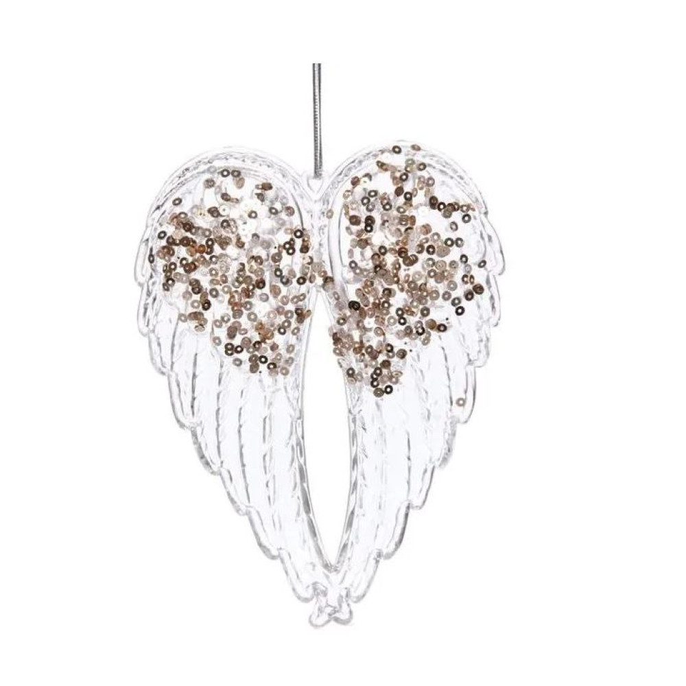 Украшение елочное пластик 14,5*11,5 см белый золотой блеск Изящные крылья Серпантин