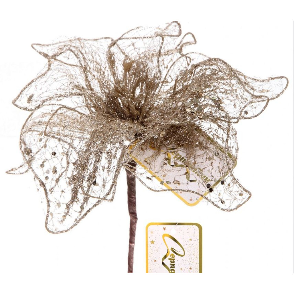 Украшение новогоднее пластик 26 см шампань Пуансеттия - Лунная ночь