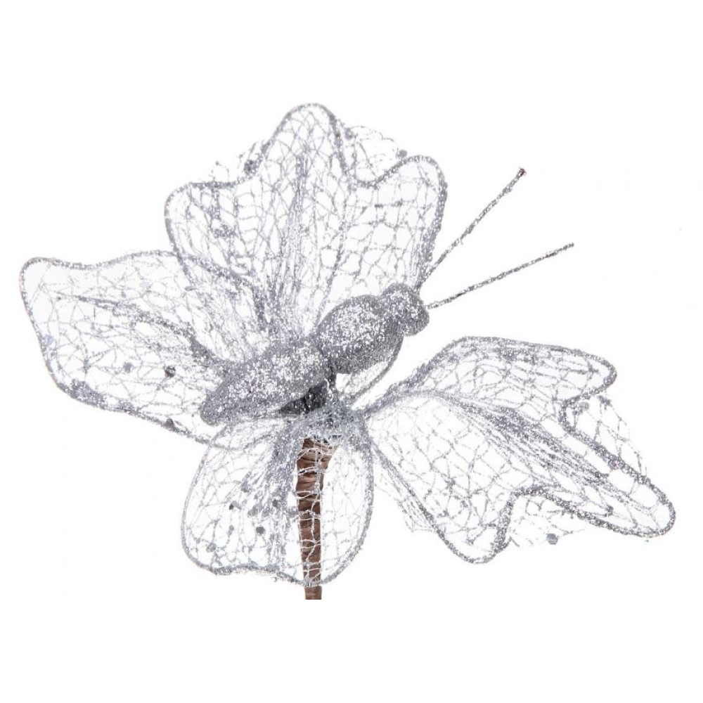 Украшение новогоднее пластик 18*15 см серебро Сияющая бабочка