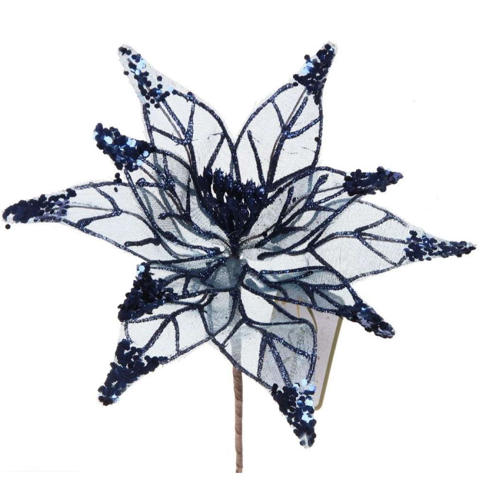 Украшение новогоднее пластик 20 см сапфир Пуансеттия Искристый цветок