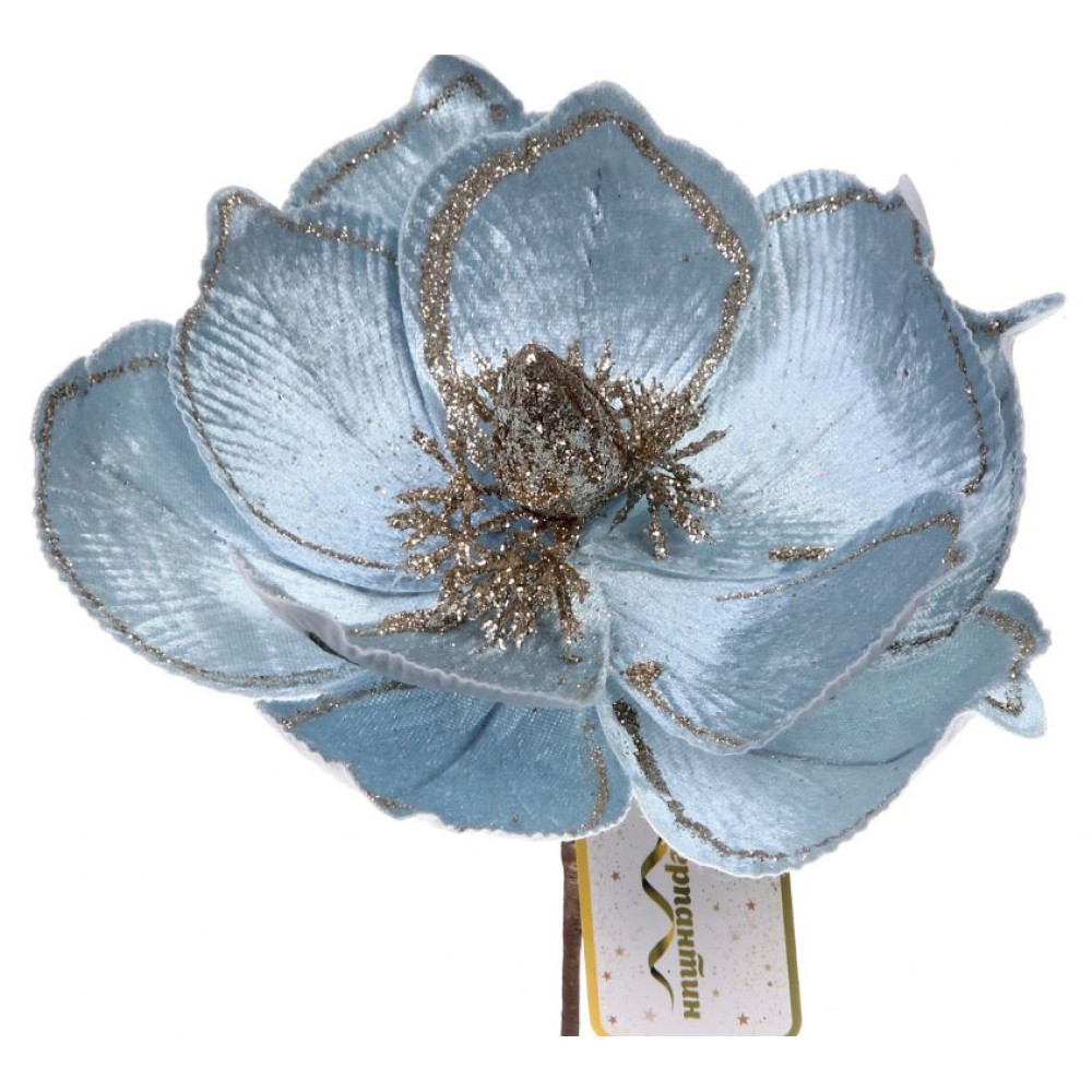 Украшение новогоднее пластик 21 см голубой Пуансеттия Симфония