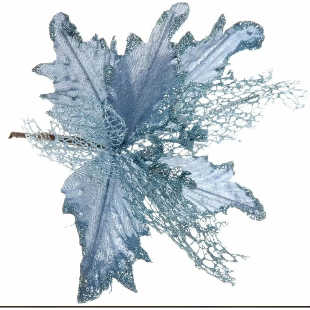 Украшение новогоднее пластик 23 см голубой Пуансеттия Сказка