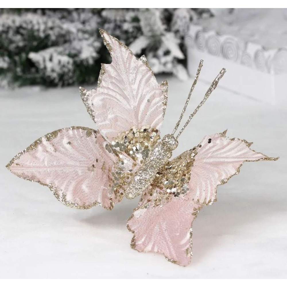 Украшение новогоднее пластик 24*14 см розовый шампань Волшебная бабочка