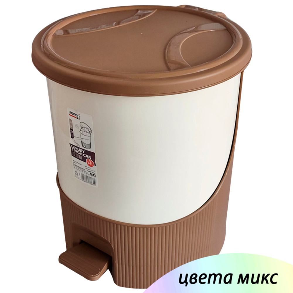 Ведро пластиковое для мусора 14 л с крышкой с педалью микс 2802 Baizheng