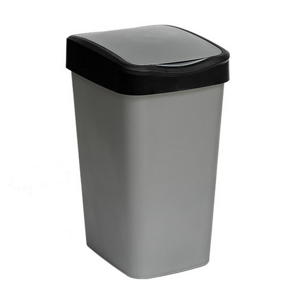 Ведро пластиковое для мусора 20 л с подвижной крышкой серый металлик черный Tandem Violet