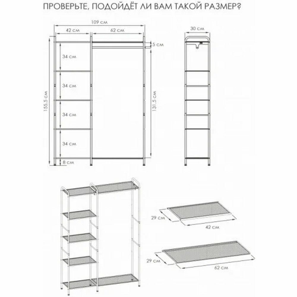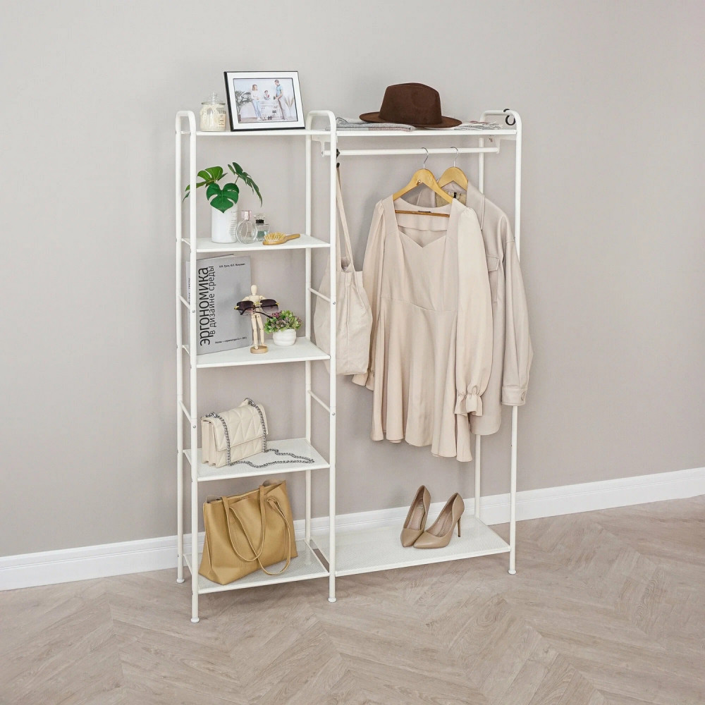 Вешалка металлическая гардеробная 109х30х155,5 см полки белый Валенсия 1 ЗМИ