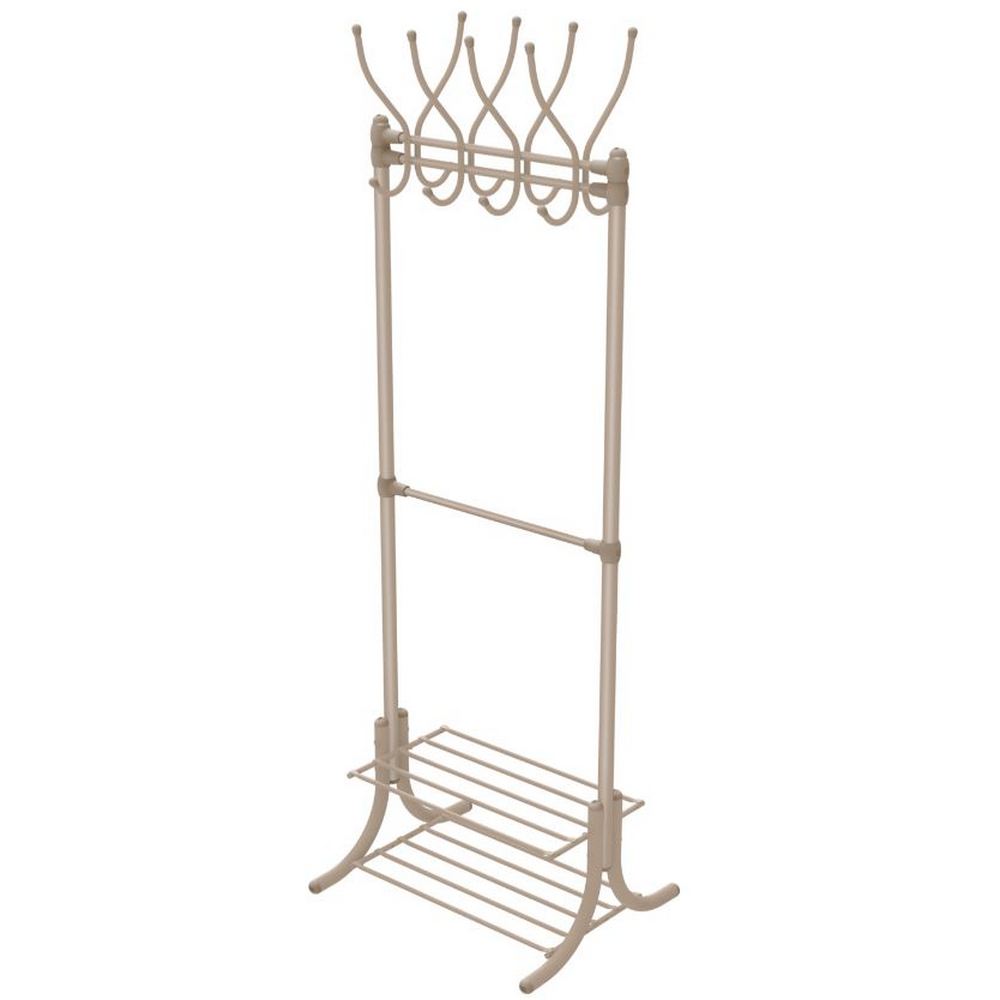 Вешалка металлическая напольная гардеробная 610*510*1780 мм с полками бежевый металлик Nika