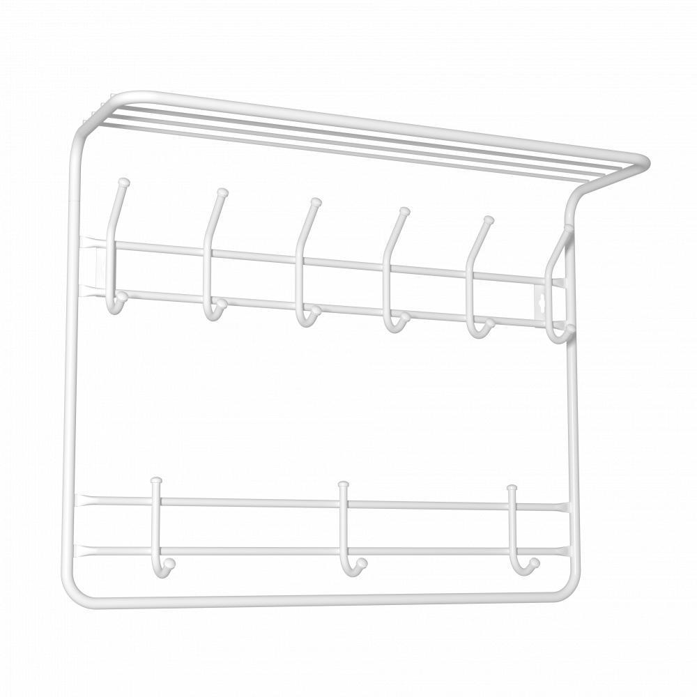 Вешалка металлическая настенная 73*58*22 см 9 крючков с полкой белый 80 ЗМИ